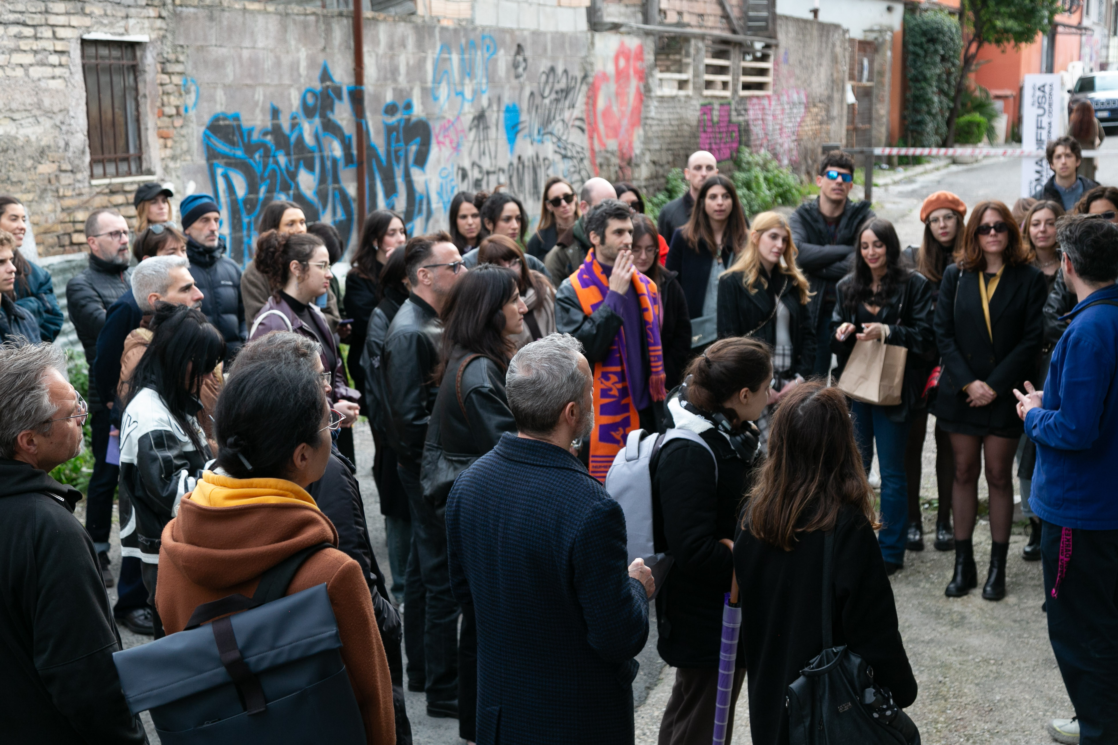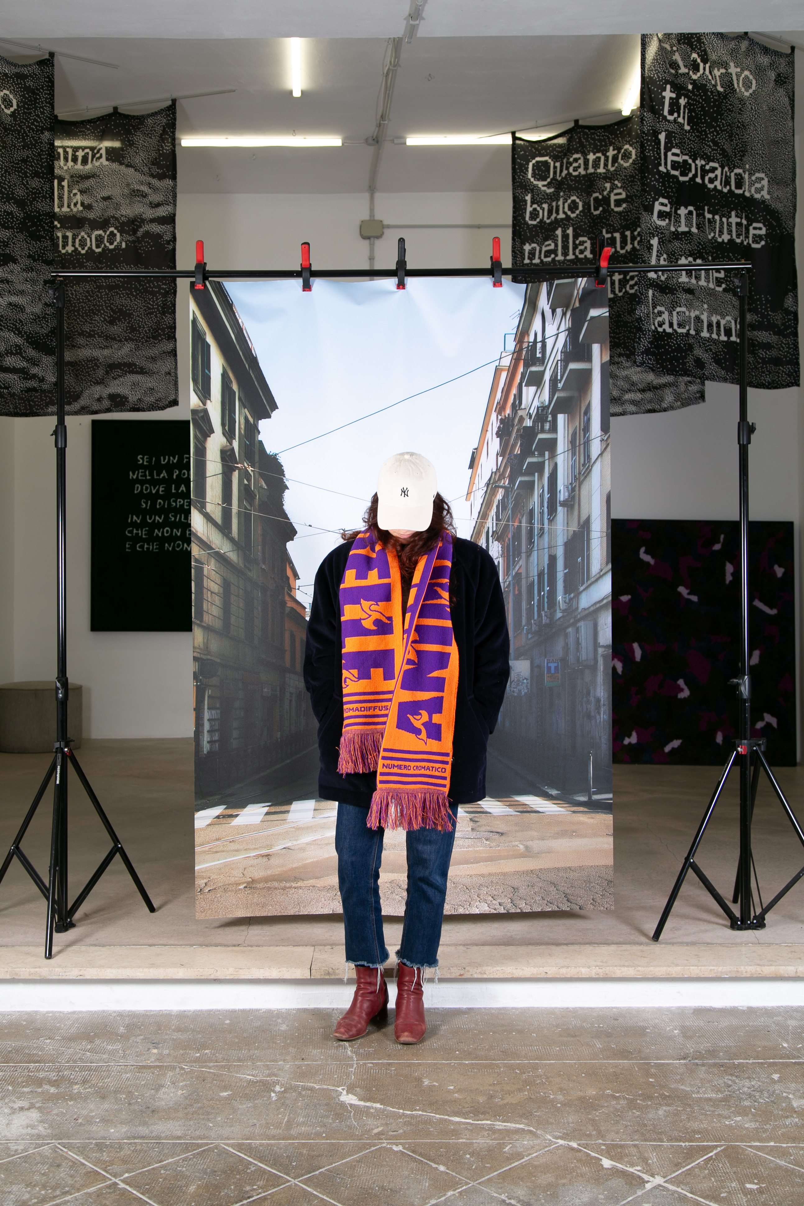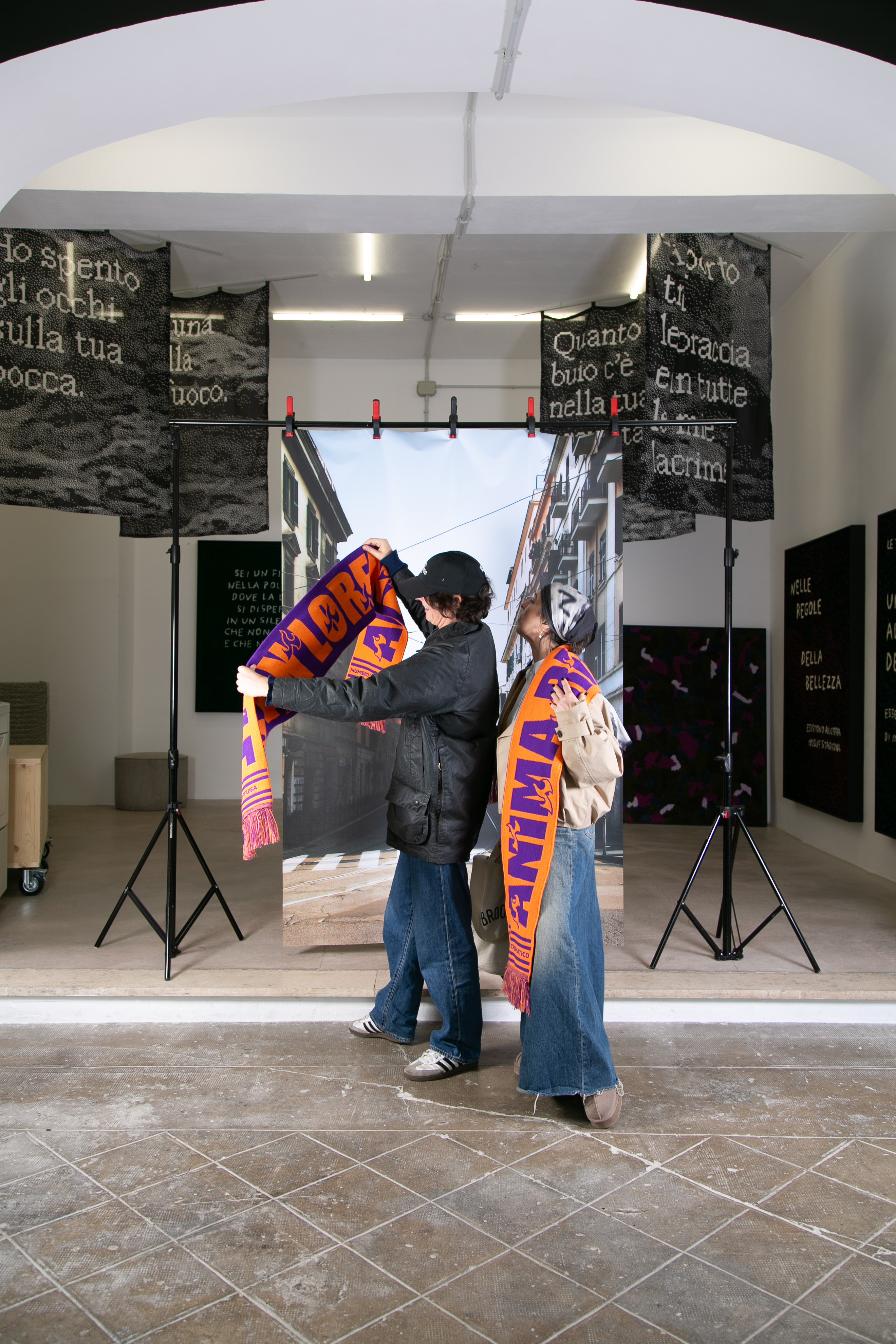 Anima ribelle si articola in due momenti distinti. Il primo, ospitato nello studio di Piazzale del Verano, invita i visitatori a partecipare a una “performance collettiva”: tutti sono chiamati a indossare la sciarpa ANIMA RIBELLE / SAN LORENZO, realizzata appositamente dal collettivo per l’evento, e a posare nello studio, contribuendo così alla creazione di un archivio visivo condiviso.
