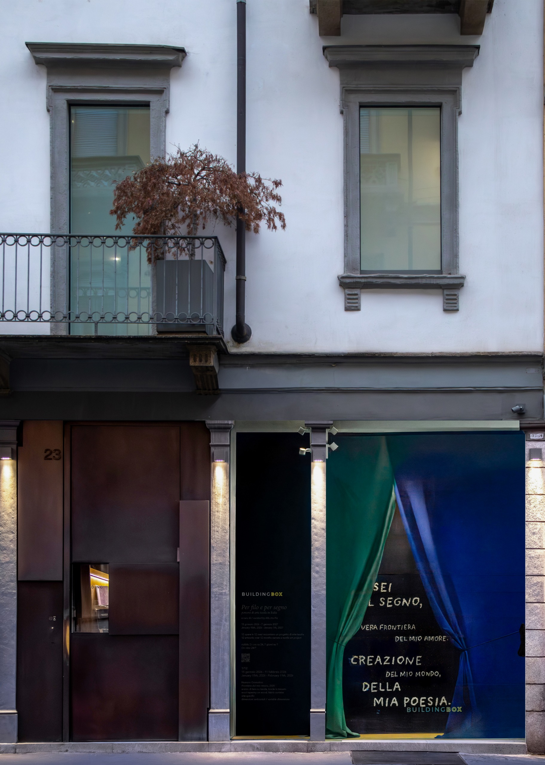 “Dal 15 gennaio 2026 al 7 gennaio 2027, BUILDING BOX presenta Per filo e per segno. Percorsi di arte tessile in Italia, un progetto espositivo a cura di Alberto Fiz che coinvolge dodici artisti italiani di generazioni differenti, invitati a riflettere sul tema del tessile contemporaneo.